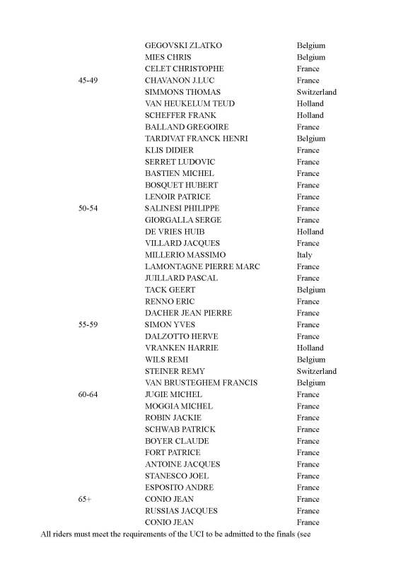 Οι συνολικές συμμετοχές ξεπερνούσαν τις 1200 και στην ενιαία κατηγορία Ε 40-49 έφταναν τις 243. Ο ανταγωνισμός ήταν αρκετά υψηλός, επόμενο βέβαια όταν κάποιος αθλητής αγωνίζεται στη χώρα που αποτελεί την καρδιά της ποδηλασίας.