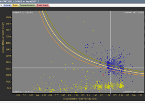 Στο πάνω δεξιά τεταρτημόριο έχω συγκεντρώσει αρκετή μάζα Ισχύος όπως και θα ήταν το σωστό, το οποίο αντιπροσωπεύει την υψηλή Περιστροφή με υψηλή Ισχύ (αυτό που συνέβαινε στα περάσματα μου κατά μήκος των 2 παράλληλων ευθειών).