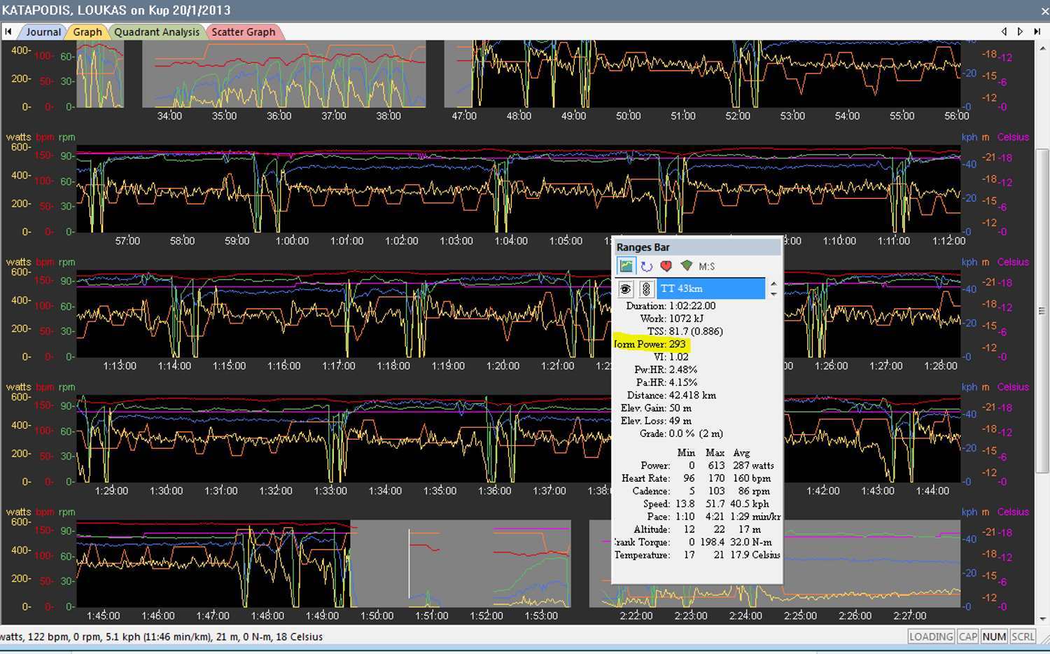 Ήταν εντυπωσιακό για εμένα το γεγονός, ότι κατάφερα να βγάλω 293w NP για 1 ώρα με 32Nm ροπή μέσο όρο. Φυσιολογικά, θα έπρεπε να είμαι μεγαλύτερο χρονικό διάστημα προπονημένος για να καταφέρω να βγάλω ένα τέτοιο αποτέλεσμα.